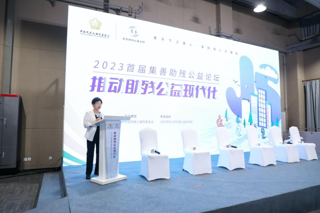 (中國(guó)殘疾人福利基金會(huì)副理事長(zhǎng)兼秘書(shū)長(zhǎng)周麗君主持首屆集善助殘公益論壇)