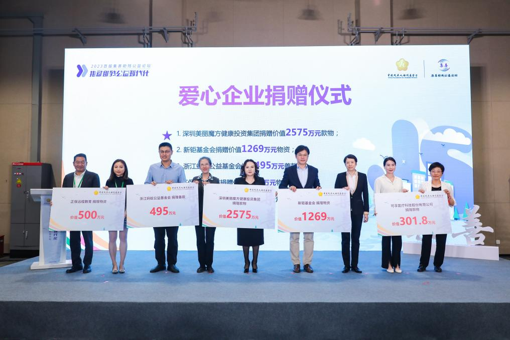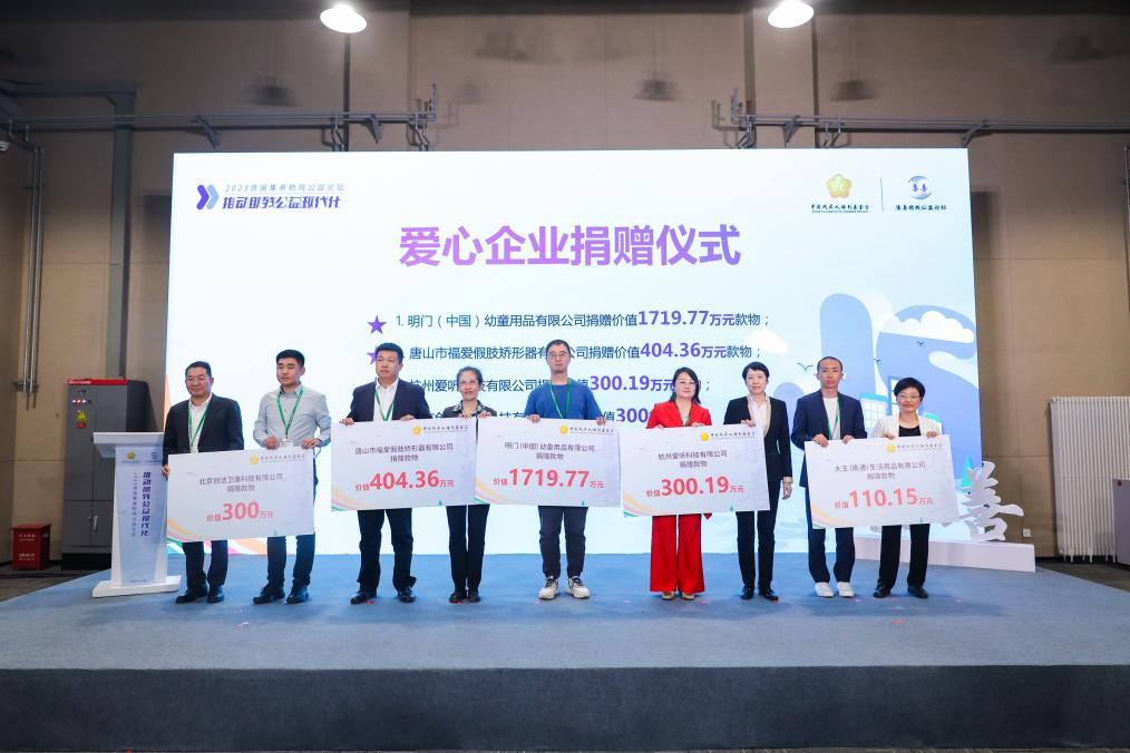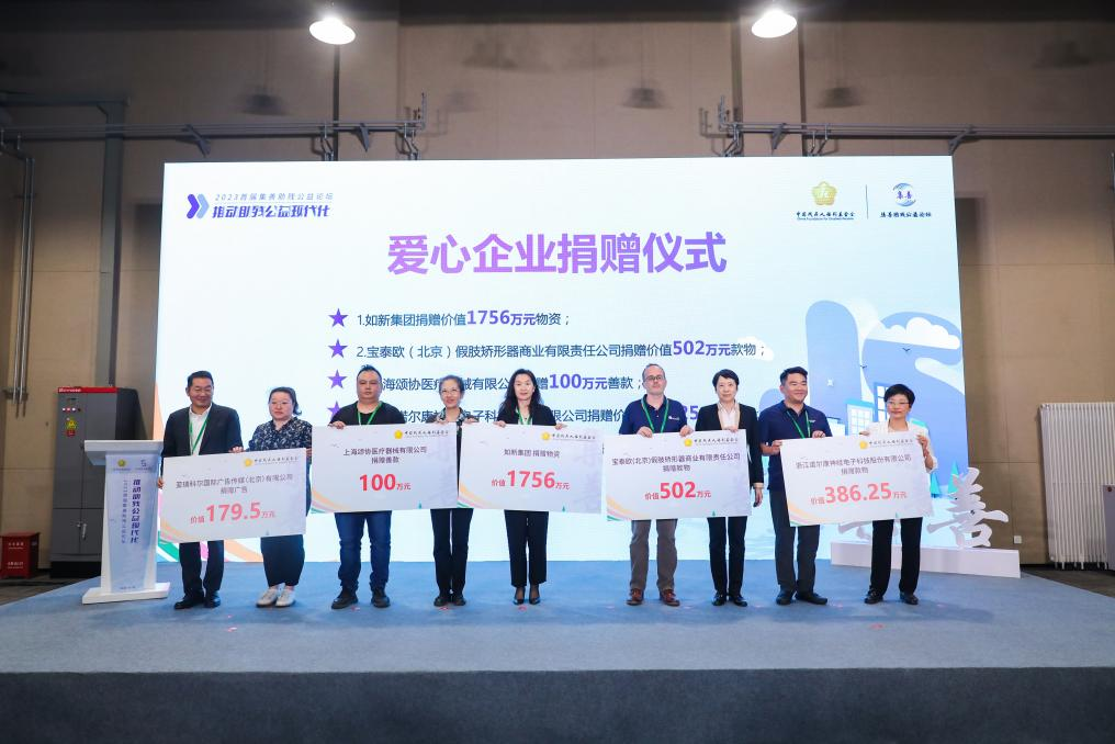 (上三圖為可孚醫(yī)療科技股份有限公司、新矩基金會(huì)、深圳美麗魔方健康投資集團(tuán)、浙江螞蟻公益基金會(huì)、正保遠(yuǎn)程教育、寶泰歐(北京)假肢矯形器商業(yè)有限責(zé)任公司、上海頌協(xié)醫(yī)療器械有限公司、如新集團(tuán)、浙江諾爾康神經(jīng)電子科技股份有限公司、亞瑞科爾國(guó)際廣告?zhèn)髅剑ū本┯邢薰?、大王(南通)生活用品有限公司、杭州?ài)聽(tīng)科技有限公司、明門(mén)(中國(guó))幼童用品有限公司、唐山市福愛(ài)假肢矯形器有限公司、北京創(chuàng)潔衛(wèi)康科技有限公司等15家愛(ài)心企業(yè)和機(jī)構(gòu)向中國(guó)殘疾人福利基金會(huì)捐贈(zèng)了總價(jià)值1.07億元的款物)