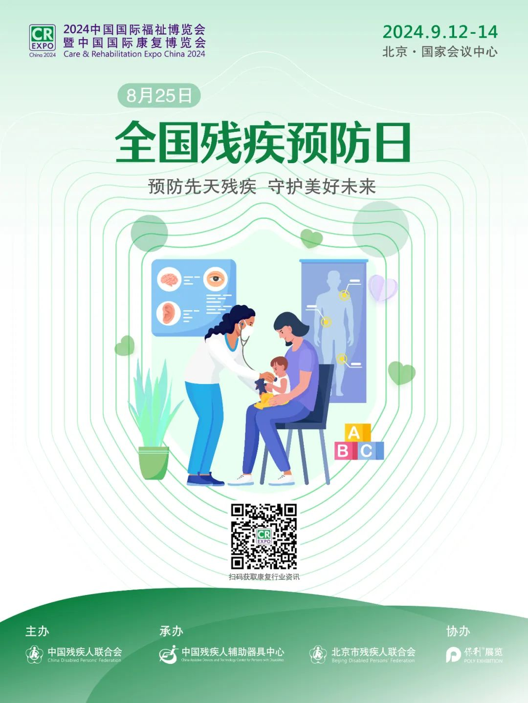 重視殘疾預防,享受健康生活 中國國際福祉博覽會暨中國國際康復博覽會 2024年9月12-14日 北京國家會議中心 現場展示先進輔助器具產品和技術,體驗康復輔助器具,助力提升殘疾預防和康復服務水平。