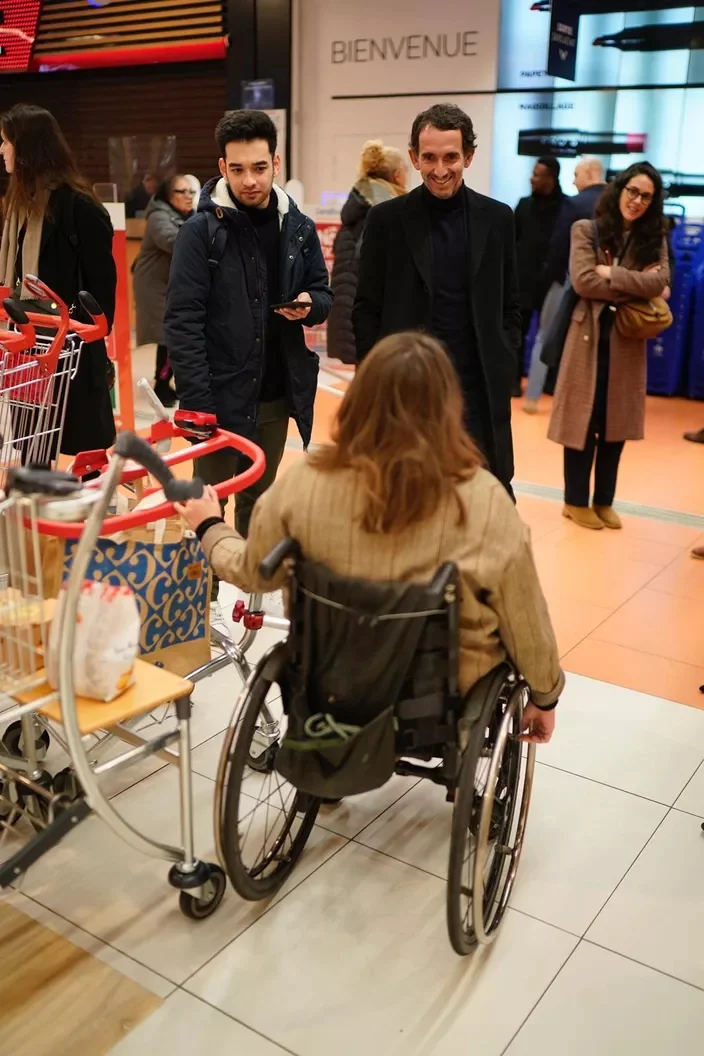 法國零售巨頭家樂福最近宣布,在上塞納省的 Villeneuve-la-Garenne 開設(shè)了法國首家專為殘障人士設(shè)計的無障礙商店。為了滿足視障人士和盲人的需求,商店提供觸覺盲文地圖,并在地面設(shè)置引導(dǎo)條。類似于在火車站和機場等公共場所常見的引導(dǎo)設(shè)計,這些引導(dǎo)條貫穿整個商店。