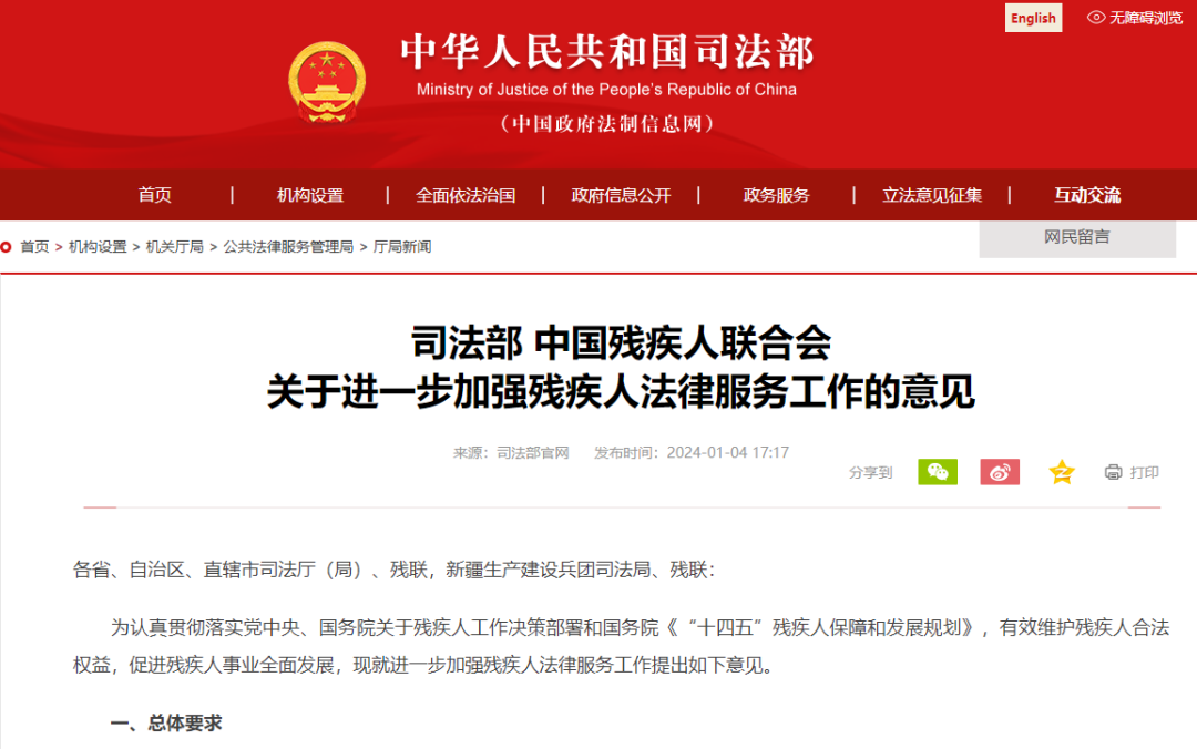 司法部 中國殘聯(lián)聯(lián)合印發(fā)意見