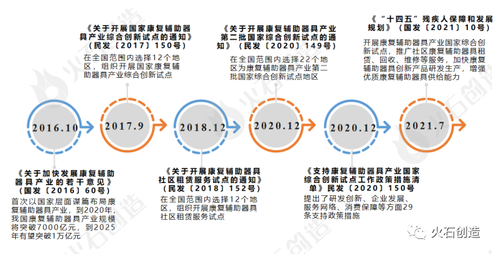 2016年10月,國(guó)務(wù)院發(fā)布《關(guān)于加快發(fā)展康復(fù)輔助器具產(chǎn)業(yè)的若干意見(jiàn)》(國(guó)發(fā)〔2016〕60號(hào)),首次以國(guó)家層面謀篇布局康復(fù)輔助器具產(chǎn)業(yè),提出增強(qiáng)自主創(chuàng)新能力、促進(jìn)產(chǎn)業(yè)優(yōu)化升級(jí)、擴(kuò)大市場(chǎng)有效供給、營(yíng)造良好市場(chǎng)環(huán)境四項(xiàng)主要任務(wù),統(tǒng)籌推進(jìn)康復(fù)輔助器具產(chǎn)業(yè)發(fā)展。
