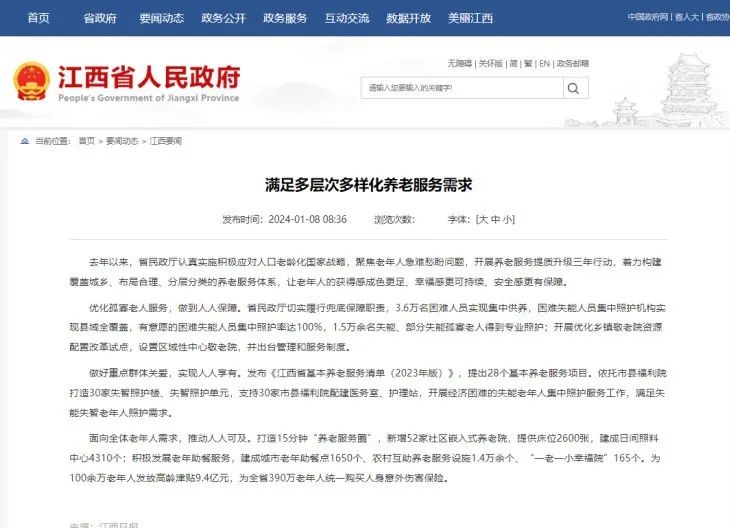 《江西省基本養(yǎng)老服務(wù)清單(2023年版)》發(fā)布