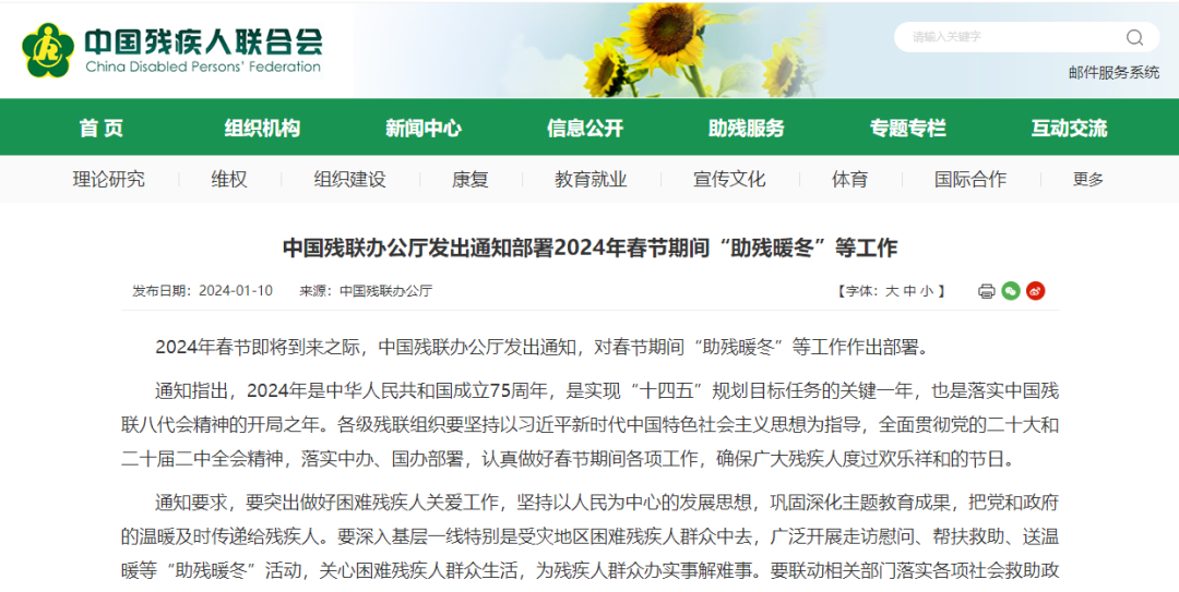中國殘聯(lián)部署2024年春節(jié)期間
