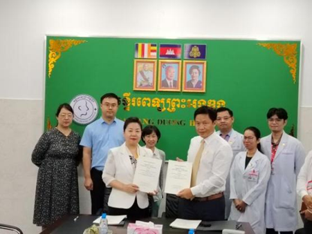 圖為與老撾、柬埔寨殘疾人協(xié)會(huì)負(fù)責(zé)人簽訂合作協(xié)議