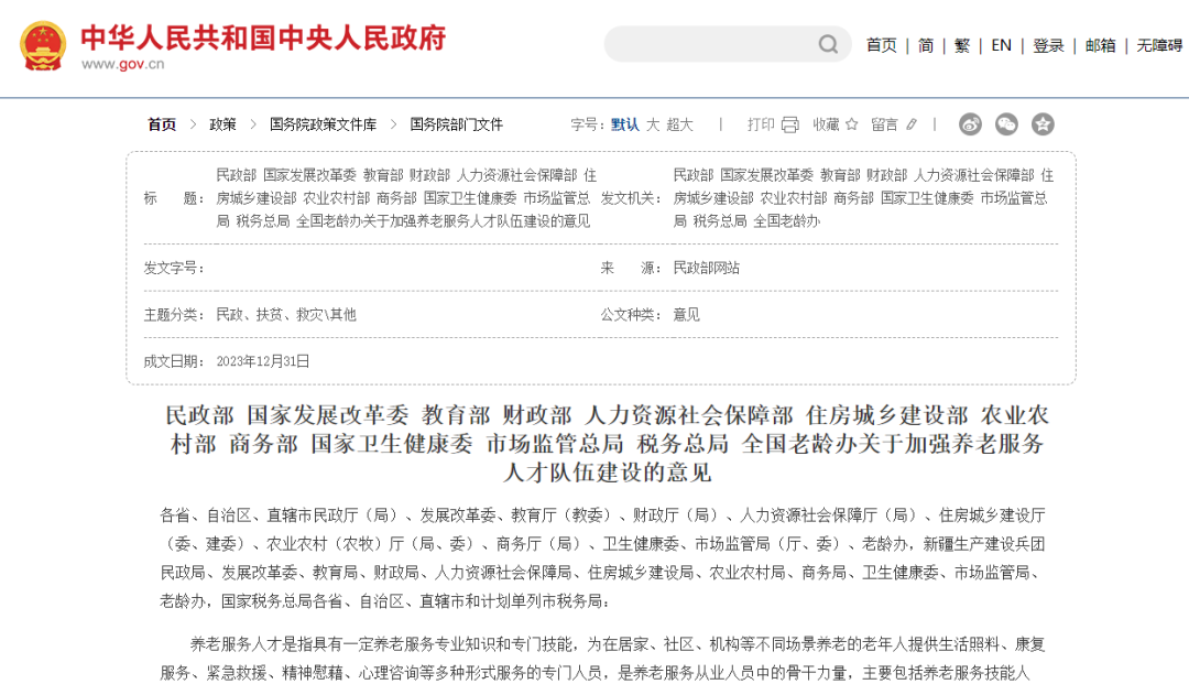 近日,民政部等12個(gè)部門制定出臺(tái)《關(guān)于加強(qiáng)養(yǎng)老服務(wù)人才隊(duì)伍建設(shè)的意見》(以下簡稱“意見”),這是我國首個(gè)關(guān)于養(yǎng)老服務(wù)人才隊(duì)伍建設(shè)的綜合性政策文件。
