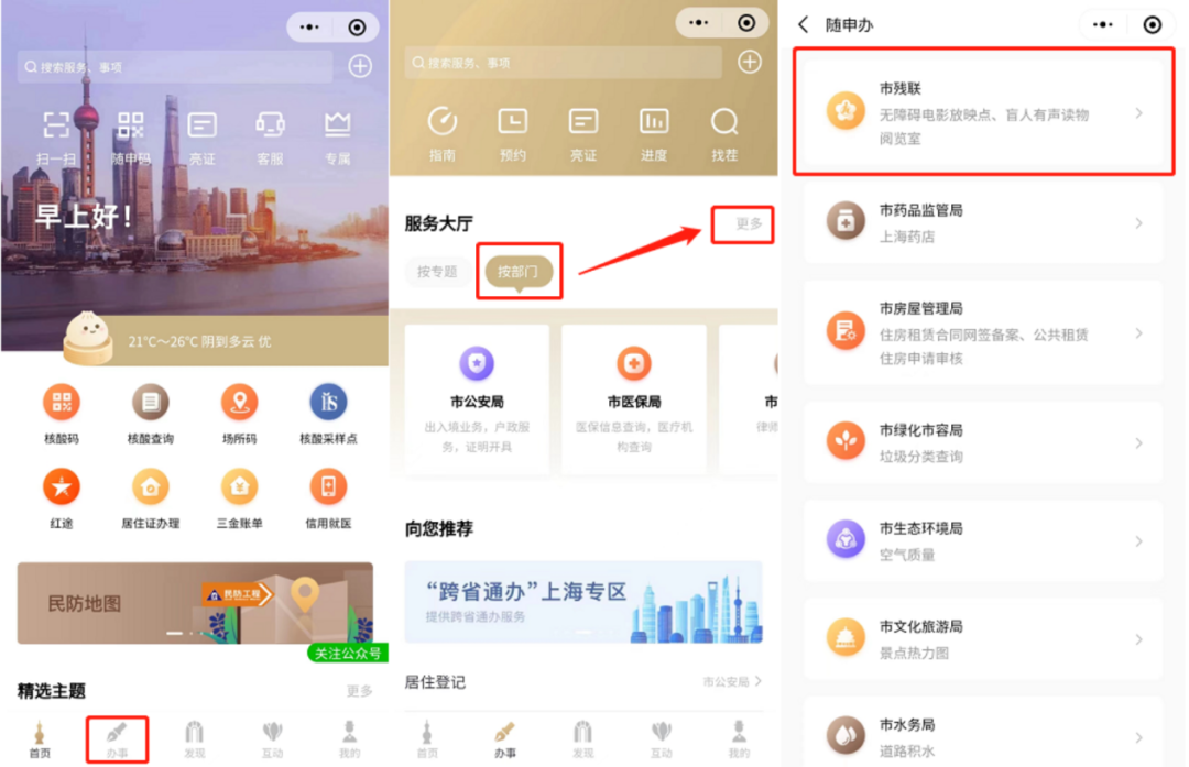 ▲通過“隨申辦”微信小程序可辦理殘疾人常用服務(wù)