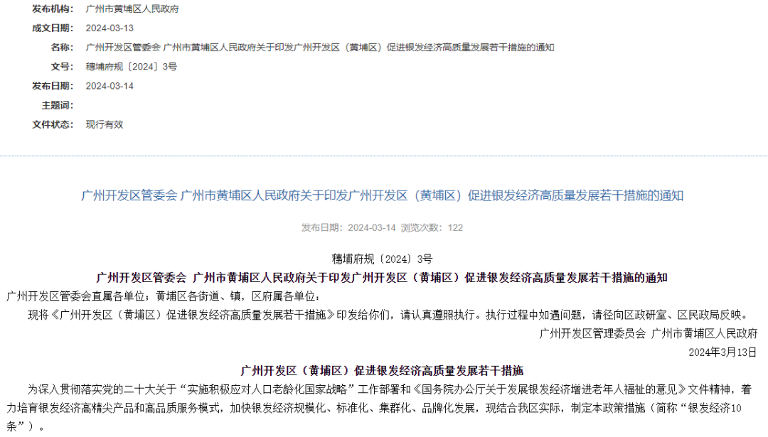 近日,廣州開發(fā)區(qū)管委會 、廣州市黃埔區(qū)人民政府印發(fā)《廣州開發(fā)區(qū)(黃埔區(qū))促進銀發(fā)經濟高質量發(fā)展若干措施的通知》,提出若干措施促進銀發(fā)經濟。