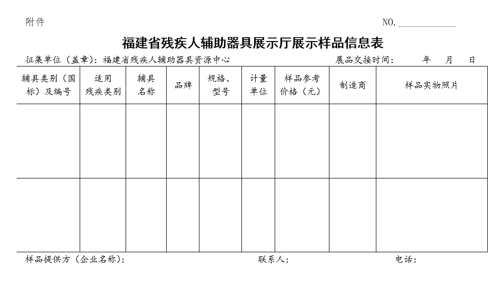 (一)請意向企業(yè)整理展品清單,詳細(xì)填寫《福建省殘疾人輔助器具展示廳展示樣品登記表》(附件)。