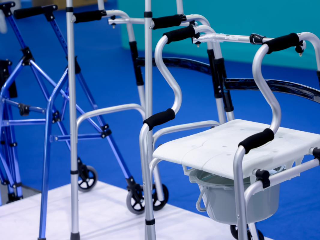 輕便型助行輔具:常見(jiàn)的有拐杖、拐杖凳、四腳拐等。還有三邊形的金屬框架助行器,其支撐面積大,穩(wěn)定性好,可將患者保護(hù)其中,便于站立或步行。升級(jí)版本還有電動(dòng)助行器,并配備儲(chǔ)物空間等。