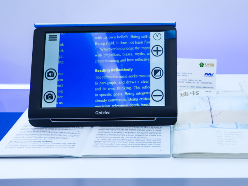視覺(jué)上:可使用老花眼鏡、放大鏡、翻書器、放大字體的擴(kuò)視機(jī)、折光菱鏡等,幫助老年人閱讀。