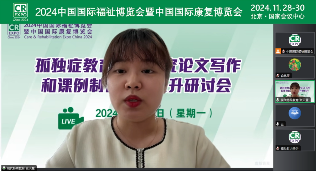 《現(xiàn)代特殊教育》編輯部編輯張?zhí)旎蹏@論文的總體介紹與寫作要求展開分析,她提到中國(guó)教育學(xué)會(huì)特殊教育分會(huì)智障教育專委會(huì)等十家單位,在2024年3月27日開啟了第一屆孤獨(dú)癥教育教學(xué)研究論文征集。現(xiàn)代特殊教育編輯部也特設(shè)了孤獨(dú)癥教育欄目,希望通過這樣的方式集思廣益、分享經(jīng)驗(yàn),共同研究孤獨(dú)癥教育的重要課題。