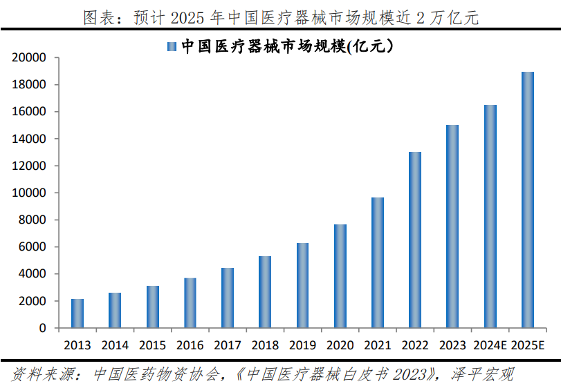 老齡化來臨,醫(yī)保體制日益健全,人均醫(yī)療保健消費支出和衛(wèi)生費用保持增長,眼科、心血管、骨科、口腔等醫(yī)療器械迎來機遇。在國家產(chǎn)業(yè)政策的支持和醫(yī)療衛(wèi)生體制改革的推動下,醫(yī)療器械行業(yè)呈現(xiàn)出長期穩(wěn)定增長的需求趨勢。據(jù)中國醫(yī)藥物資協(xié)會數(shù)據(jù),2022年中國醫(yī)療器械行業(yè)的市場規(guī)模約為1.3萬億元,預計到2025年將接近2萬億元。醫(yī)療器械行業(yè)中游細分產(chǎn)品包括高端植介入耗材、低端醫(yī)用耗材、醫(yī)療設備和體內(nèi)診斷等。隨著老齡化到來、醫(yī)保體制日益健全、人均醫(yī)療保健消費支出和衛(wèi)生費用保持快速增長等,眼科、心血管耗材、骨科、口腔耗材等與中老年息息相關的醫(yī)療器械迎來新機遇。具體來看: