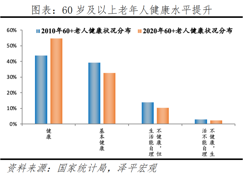 2)老年人綜合素質(zhì)明顯提升,教育水平提升、健康水平提升、壽命延長。