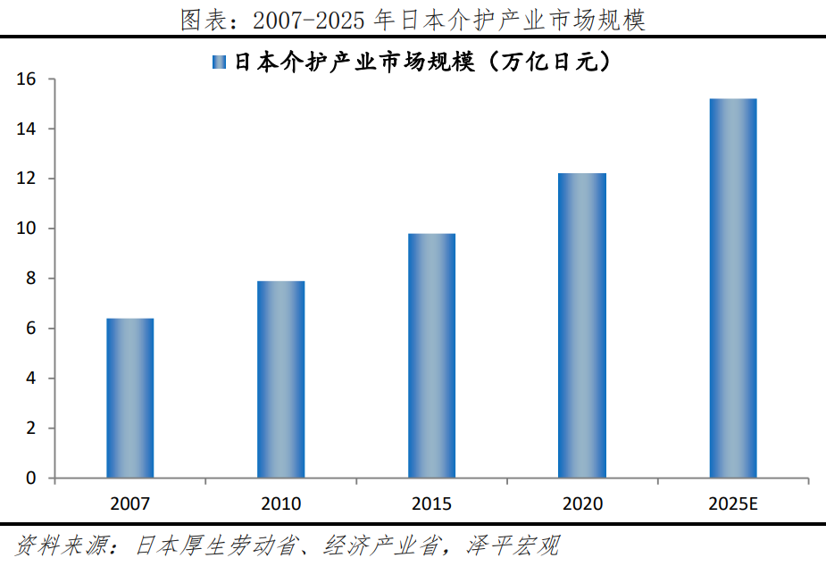 1)護理產(chǎn)業(yè)方面,日本介護市場規(guī)模持續(xù)快速增長,在《介護保險》支持下,老年人介護產(chǎn)業(yè)呈現(xiàn)出高度標準化、多樣化和個性化的發(fā)展特征。2007-2025年,平均年增長率在8%左右,遠高于同期老年人口平均增長率(約2%)。老年人介護產(chǎn)業(yè)依托補貼與護理保險報銷政策,滿足全層次老年人個性化需求。SOMPO Care(日本財產(chǎn)保險公司)提供服務涵蓋機構(gòu)養(yǎng)老、居家護理和日間護理,覆蓋多樣化護理場景。