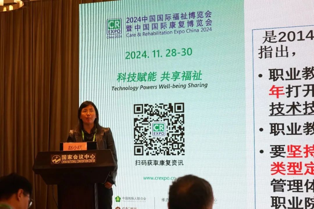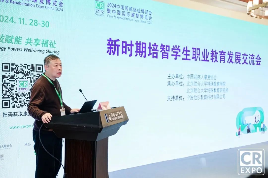 11月29-30日,在2024中國國際福祉博覽會暨中國國際康復(fù)博覽會期間,由中國殘疾人康復(fù)協(xié)會主辦、特殊教育學(xué)院和特殊教育研究所承辦“新時期培智學(xué)生職業(yè)教育發(fā)展交流會”成功舉行。此次交流會旨在落實(shí)黨的二十大提出的“強(qiáng)化特殊教育普惠發(fā)展”以及“完善重點(diǎn)群體就業(yè)支持體系”、國務(wù)院印發(fā)的《“十四五”殘疾人保障和發(fā)展規(guī)劃》中提出“提升殘疾人職業(yè)素質(zhì)和就業(yè)創(chuàng)業(yè)能力”、國務(wù)院辦公廳轉(zhuǎn)發(fā)《“十四五”特殊教育發(fā)展提升行動計(jì)劃》中提出“積極探索設(shè)置面向智力殘疾、多重殘疾和孤獨(dú)癥等殘疾學(xué)生的專業(yè)等文件精神,推動培智學(xué)生職業(yè)教育事業(yè)規(guī)范發(fā)展。此次交流會主要分為兩部分內(nèi)容,29日在國家會議中心進(jìn)行培智學(xué)生職業(yè)教育發(fā)展交流會,30日在特殊教育學(xué)院進(jìn)行培智職業(yè)教育共學(xué)活動。