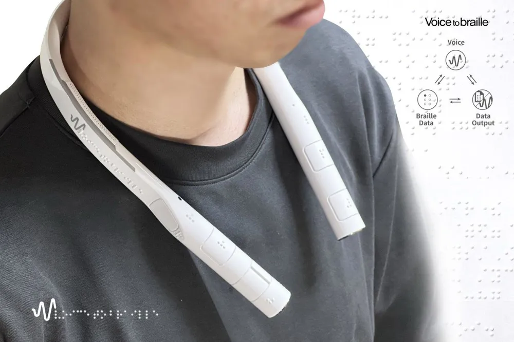 Voice to Braille 具有精確的麥克風(fēng)系統(tǒng),可實現(xiàn)準(zhǔn)確的語音識別,并采用先進(jìn)的人工智能將語音轉(zhuǎn)換為數(shù)字文本和盲文數(shù)據(jù)。盲文數(shù)據(jù)可以自由編輯并通過設(shè)備的超定向揚聲器以音頻形式輸出或傳輸?shù)狡渌O(shè)備(包括盲文打印機(jī)),從而增強(qiáng)可訪問性和無縫通信。