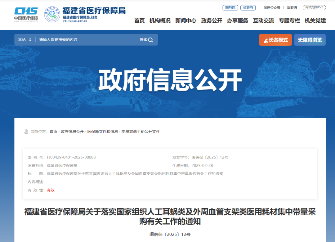 2月28日,福建醫(yī)保局發(fā)布《關(guān)于落實(shí)國(guó)家組織人工耳蝸類(lèi)及外周血管支架類(lèi)醫(yī)用耗材集中帶量采購(gòu)有關(guān)工作的通知》,其中指出,人工耳蝸類(lèi)中選結(jié)果于2025年3月7日在福建省醫(yī)療保障信息平臺(tái)藥品和醫(yī)用耗材招標(biāo)和采購(gòu)交易子系統(tǒng)掛網(wǎng),3月11日起正式執(zhí)行;外周血管支架類(lèi)中選結(jié)果于5月12日在招采子系統(tǒng)掛網(wǎng),5月14日起正式執(zhí)行。