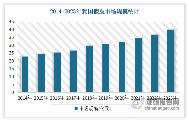 觀研天下數(shù)據(jù)表明,2023年中國假肢市場規(guī)模已接近40億元人民幣,其預(yù)測2024-2031年中國假肢市場的年均復(fù)合增長率(CAGR)約為15.8%。