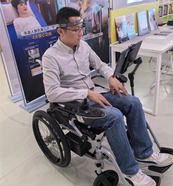 由華南腦控(廣東)智能科技有限公司研發(fā)的腦機(jī)AI電動(dòng)輪椅則可通過佩戴腦機(jī)AI頭環(huán),采集用戶腦電信號(hào)等多模態(tài)信號(hào),從而精準(zhǔn)識(shí)別用戶意圖,以實(shí)現(xiàn)對(duì)輪椅的控制。