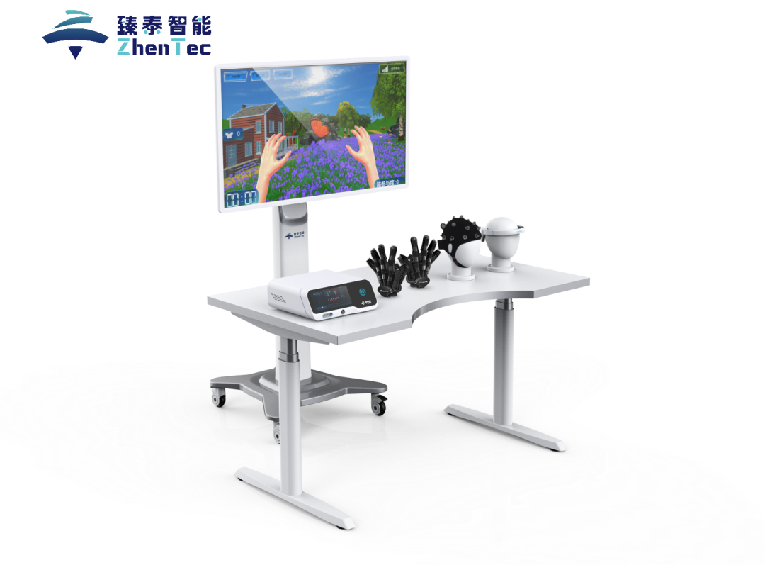 同樣屬于西安臻泰智能旗下的腦機(jī)接口手功能康復(fù)訓(xùn)練系統(tǒng)(BCI+OT)則是國(guó)內(nèi)首款視覺運(yùn)動(dòng)誘發(fā)的腦控手功能康復(fù)訓(xùn)練系統(tǒng)。該系統(tǒng)通過視覺運(yùn)動(dòng)誘發(fā)范式與手部鏡像動(dòng)作協(xié)同刺激,有效激活患者視覺和感覺運(yùn)動(dòng)皮層的多腦區(qū)響應(yīng),以此實(shí)現(xiàn)意念控制下的“中樞-外周-中樞”閉環(huán)主動(dòng)康復(fù)訓(xùn)練,可有效幫助患者進(jìn)行康復(fù)治療。
