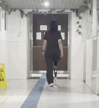 無獨(dú)有偶,26歲的林韻也在康復(fù)師的幫助下,通過與強(qiáng)腦科技智能仿生腿的訓(xùn)練磨合,重新找回了曾經(jīng)走路的感覺。同時(shí),林韻也慢慢可以穿戴著假肢完成走路、交替上下樓梯,跑步等動(dòng)作。林韻在不斷訓(xùn)練下,其走路也已和健全人無異。