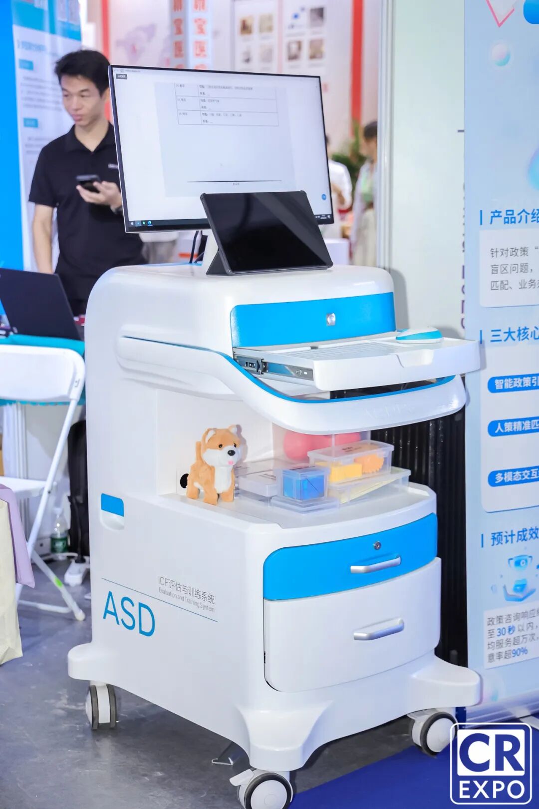 在合肥哈工艾斯德康智能科技有限公司展位,另一項(xiàng)“精準(zhǔn)康復(fù)” 技術(shù)——孤獨(dú)癥多模態(tài)智能化輔助診斷系統(tǒng)同樣引人關(guān)注。演示中,孩子只需佩戴簡易腦電設(shè)備,系統(tǒng)就能通過分析腦電信號、結(jié)合行為評估數(shù)據(jù),在半小時內(nèi)給出初步診斷建議。“對孤獨(dú)癥兒童來說,‘早發(fā)現(xiàn)、早干預(yù)’至關(guān)重要。”研發(fā)人員表示,該系統(tǒng)已在全國20多家康復(fù)機(jī)構(gòu)試用,評估效率是傳統(tǒng)方式的10倍,能幫助更多孩子抓住康復(fù)“黃金期”。