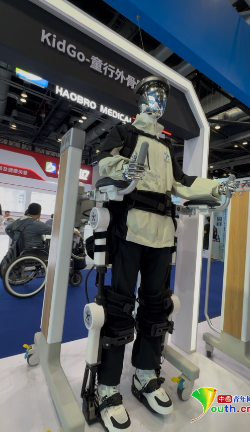 博覽會(huì)展出的外骨骼裝備。中國青年網(wǎng)實(shí)習(xí)生 肖友威 攝