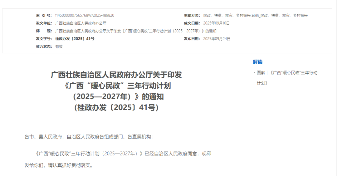 日前,《廣西“暖心民政”三年行動計劃(2025—2027年)》發(fā)布,為今后3年民政工作作出總體設計,提出22條發(fā)展所需、群眾所盼、有溫度有力度的重點政策舉措,加快解決群眾急難愁盼問題。在“暖心民政”三年行動計劃里,廣西將持續(xù)增加普惠養(yǎng)老服務供給,培育發(fā)展200個以上社區(qū)嵌入式養(yǎng)老服務設施、400個以上農(nóng)村“家門口”養(yǎng)老服務站,讓老年人實現(xiàn)就近就便養(yǎng)老。今年年底前,廣西將按照國家部署,為中度以上失能的老年人發(fā)放電子消費補貼券,進一步減輕老年人養(yǎng)老的經(jīng)濟負擔。