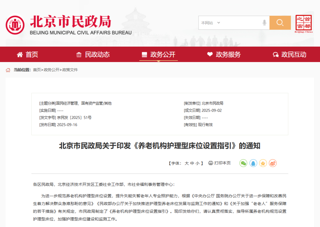北京出臺養(yǎng)老機構護理型床位設置指引