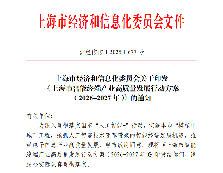 近日,上海市經(jīng)濟和信息化委員會印發(fā)《上海市智能終端產(chǎn)業(yè)高質(zhì)量發(fā)展行動方案(2026-2027年)》的通知,共20條具體措施。其中,在激發(fā)銀發(fā)經(jīng)濟終端活力方面,將圍繞健康監(jiān)測、感知提升、安全預警、便捷通訊等功能需求,支持人工智能助聽器、自動駕駛輪椅、智能導盲設備、穿戴監(jiān)測設備、家庭情感陪伴終端、智能仿生假肢等創(chuàng)新產(chǎn)品發(fā)展。推進智能終端功能優(yōu)化,向普惠化、智能化、情感化方向升級。搭建老年、殘疾人群體與科技產(chǎn)品連接橋梁,加速終端在養(yǎng)老和殘疾人養(yǎng)護等領域的應用落地。