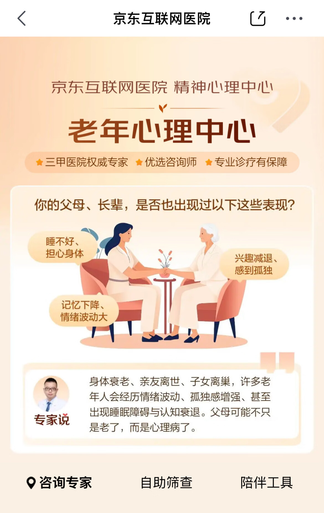 京東互聯(lián)網(wǎng)醫(yī)院上線老年心理門診