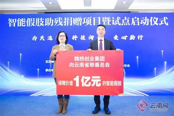 12月3日,“智能假肢助殘捐贈(zèng)項(xiàng)目暨試點(diǎn)啟動(dòng)儀式”在云南省康復(fù)輔具技術(shù)中心舉行。本次活動(dòng)以“為民造福,科技向善,愛(ài)心助行”為主題。儀式上,魏橋創(chuàng)業(yè)集團(tuán)向云南省慈善總會(huì)捐贈(zèng)價(jià)值1億元的智能假肢,“守望工程?智能假肢助殘項(xiàng)目”同步啟動(dòng),預(yù)計(jì)將為全省2000名肢體殘疾群眾帶來(lái)生活新希望。