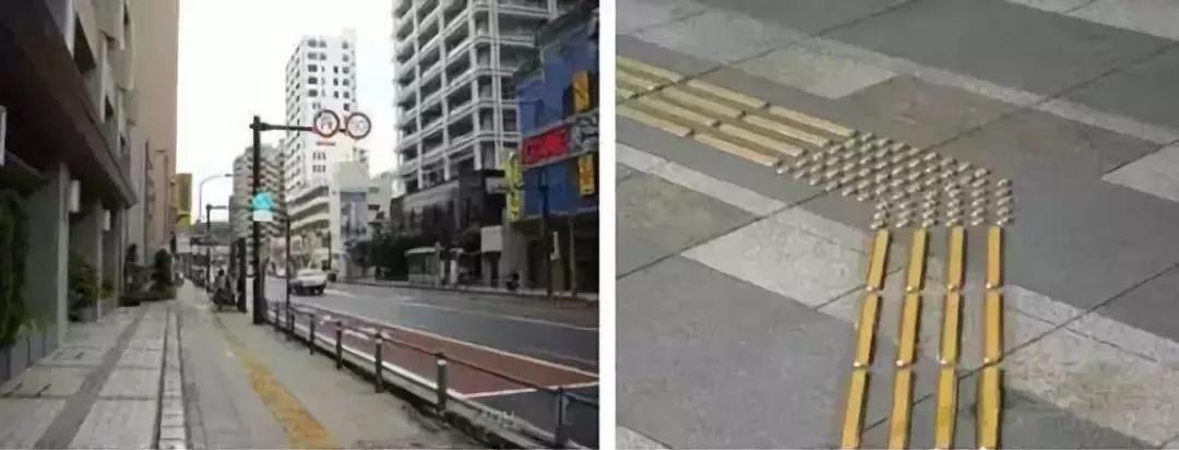 日本道路中的盲道鋪設(shè)更細(xì)致之處在于過街設(shè)施,過街的人行橫道也設(shè)有盲道,與人行道的盲道連貫形成統(tǒng)一體系。