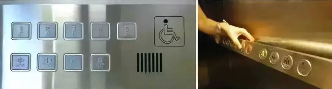 人行扶梯殘疾人專用按鈕 / 特殊高度的電梯按鈕 / 室內(nèi)盲道直接通向殘疾人專用電梯