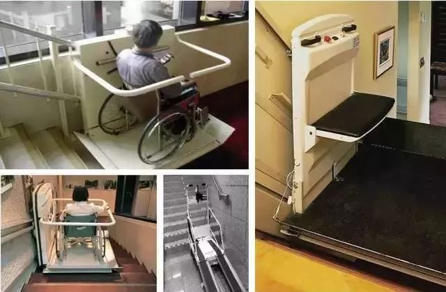 公共設(shè)施的入口大多數(shù)都設(shè)有殘疾人專用下樓梯的車,樓梯間也設(shè)有殘疾人專用的輪椅升降機