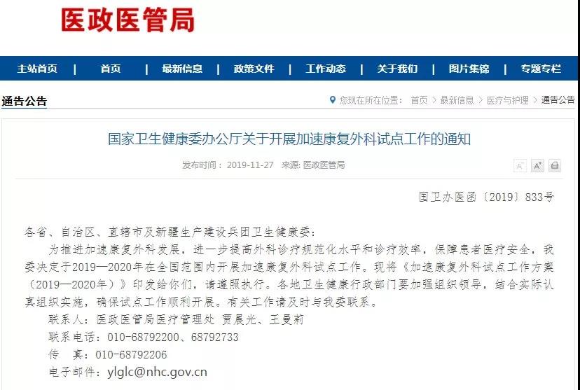 11月27日,國家衛(wèi)生健康委發(fā)布《關(guān)于開展加速康復(fù)外科試點工作的通知》(以下簡稱《通知》)提出,將于2019-2020年在全國范圍內(nèi)遴選一定數(shù)量的醫(yī)院開展加速康復(fù)外科試點。