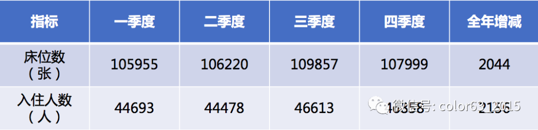 床位數(shù)和入住人數(shù)雖然全年都有所增長,但又分別在個(gè)別季度有所下降。其中床位數(shù)在第四季度下降較明顯,按照慣例,第四季度有重陽節(jié),是養(yǎng)老機(jī)構(gòu)密集開業(yè)的日子,但卻出現(xiàn)床位大幅減少的情況實(shí)屬罕見。那些減少的床位數(shù)去了哪里,這是個(gè)問題……