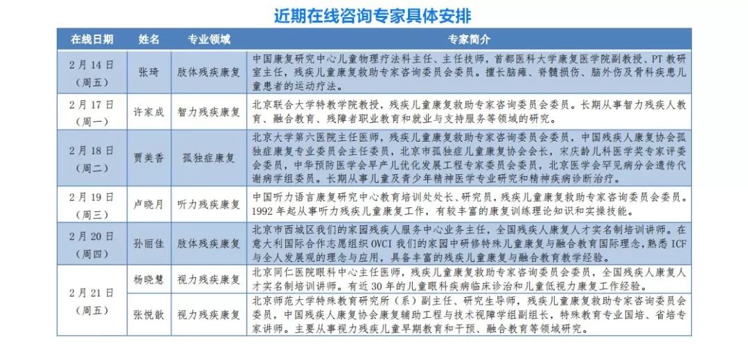 為切實(shí)做好疫情防控工作,幫助廣大殘疾兒童居家開展康復(fù)訓(xùn)練,中國殘聯(lián)將于2月14日開設(shè)“抗擊疫情 殘疾兒童康復(fù)專家在線咨詢”專欄,邀請(qǐng)康復(fù)領(lǐng)域具有豐富實(shí)踐經(jīng)驗(yàn)的專家在線為殘疾兒童家長提供專業(yè)解答。