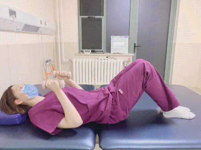 (如果家中沒有啞鈴可以用裝滿水的水瓶代替;如果負(fù)重太累,可以不負(fù)重進(jìn)行)