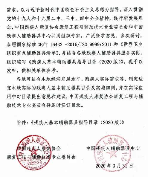 為促進(jìn)殘疾人輔助器具保障制度建設(shè),推動(dòng)殘疾人輔助器具行業(yè)發(fā)展和科學(xué)管理,加強(qiáng)對(duì)殘疾人輔助器具產(chǎn)品和服務(wù)規(guī)范化引導(dǎo),不斷滿(mǎn)足殘疾人多樣化、個(gè)性化、專(zhuān)業(yè)化的輔助器具服務(wù)需求,中國(guó)殘疾人康復(fù)協(xié)會(huì)康復(fù)工程與輔助技術(shù)專(zhuān)業(yè)委員會(huì)和中國(guó)殘疾人輔助器具中心共同組織專(zhuān)家,廣泛征求意見(jiàn)、多次研討,參照國(guó)家標(biāo)準(zhǔn)GB/T 16432 -2016/ISO 9999:2011和《世界衛(wèi)生組織重點(diǎn)輔助器具清單》,并結(jié)合各地殘疾人輔助器具服務(wù)實(shí)際,組織編寫(xiě)《殘疾人基本輔助器具指導(dǎo)目錄(2020版)》?,F(xiàn)予以發(fā)布,供相關(guān)單位參考。